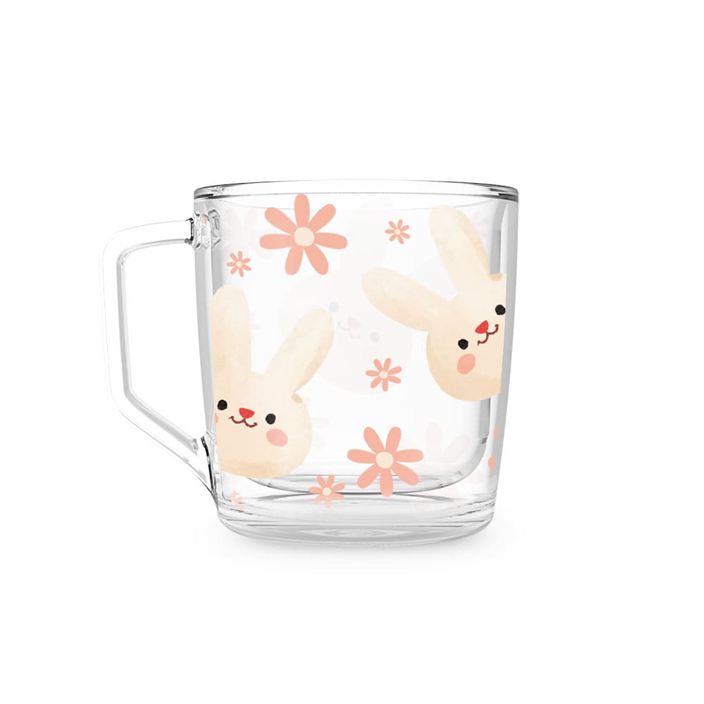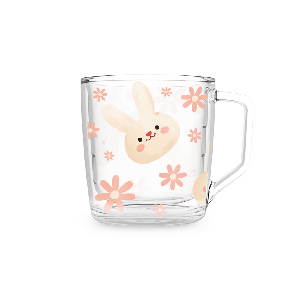 Xícara HX86 – Coelhos e Flores Rosas